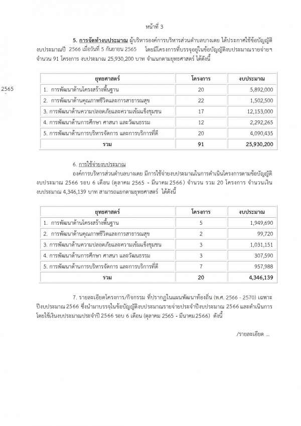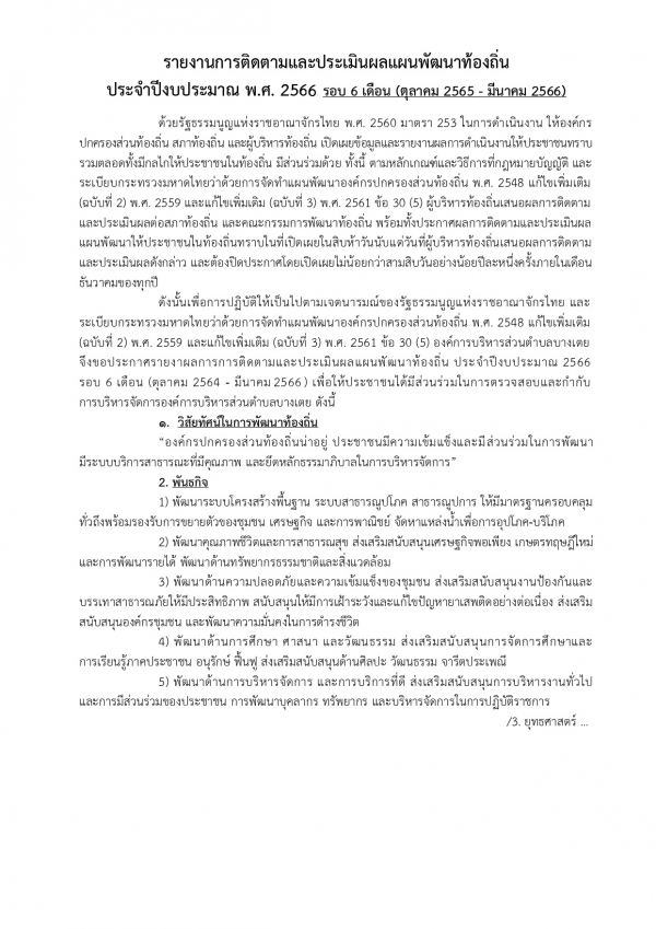 รายงานการกำกับติดตามการดำเนินงานและการใช้งบประมาณประจำปี 2566 รอบ 6 เดือน