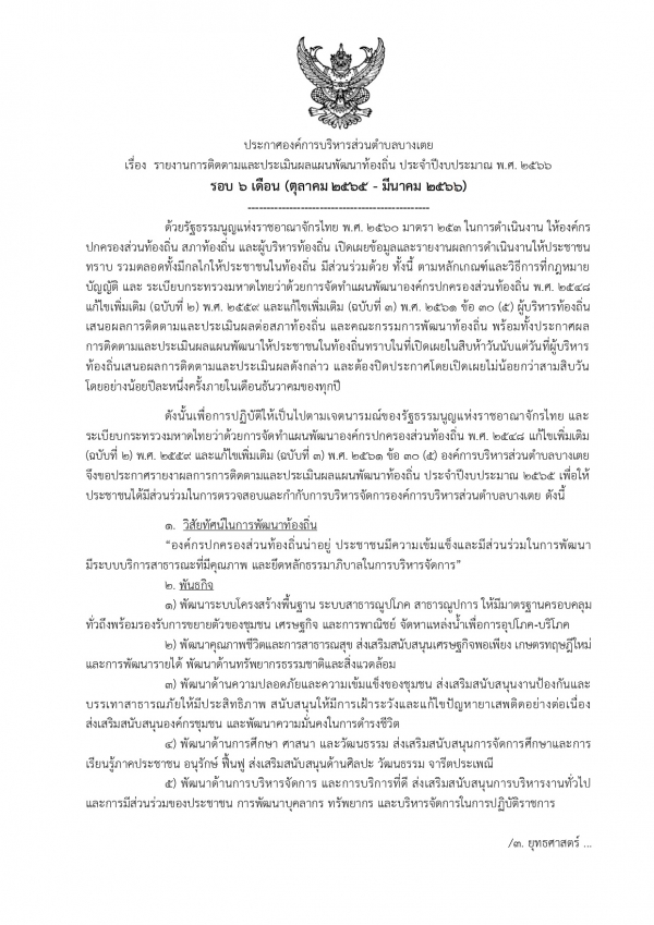 รายงานติดตามผลการดำเนินงานประจำปี รอบ 6 เดือน