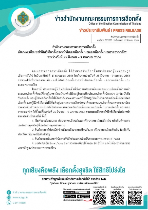 ประชาสัมพันธ์ข่าวสารการเลือกตั้งสมาชิกสภาผู้แทนราษฎร