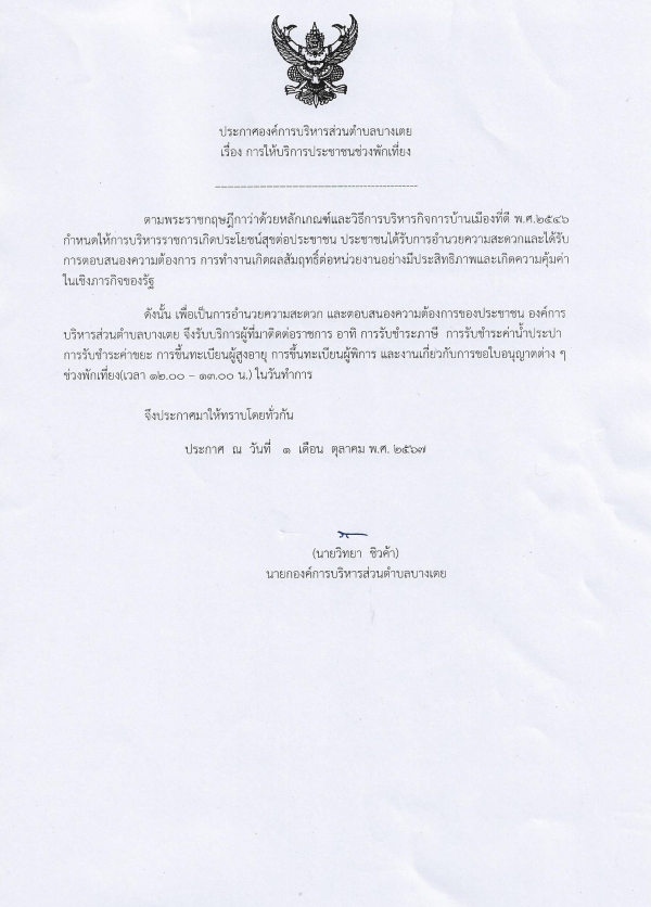 การให้บริการประชาชนช่วงพักเที่ยงปีงบประมาณ 2568