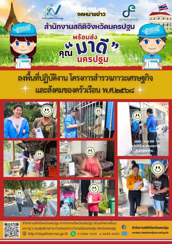 สำนักงานสถิติจังหวัดนครปฐม เชิญชวนประชาชนชาวจังหวัดนครปฐมร่วมใจให้ข้อมูลโครงการสำมะโนประชากรและเคหะ พ.ศ. 2568