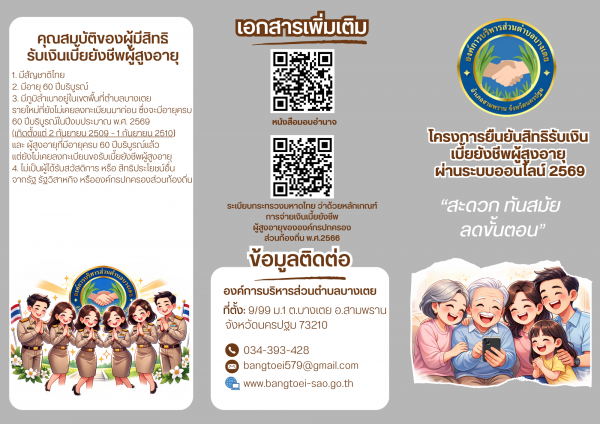 โครงการยืนยันสิทธิการขอรับเงินเบี้ยยังชีพผู้สูงอายุ ผ่านระบบออนไลน์ ประจำปีงบประมาณ พ.ศ. 2569