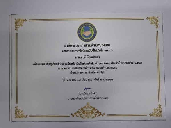 ต้นแบบอาสาสมัครท้องถิ่นรักษ์โลกดีเด่น ในพื้นที่ตำบลบางเตย ประจำปีงบประมาณ 2567