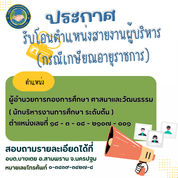 ประกาศรับโอนตำแหน่งสายงานผู้บริหาร กรณีเกษียณอายุราชการ
